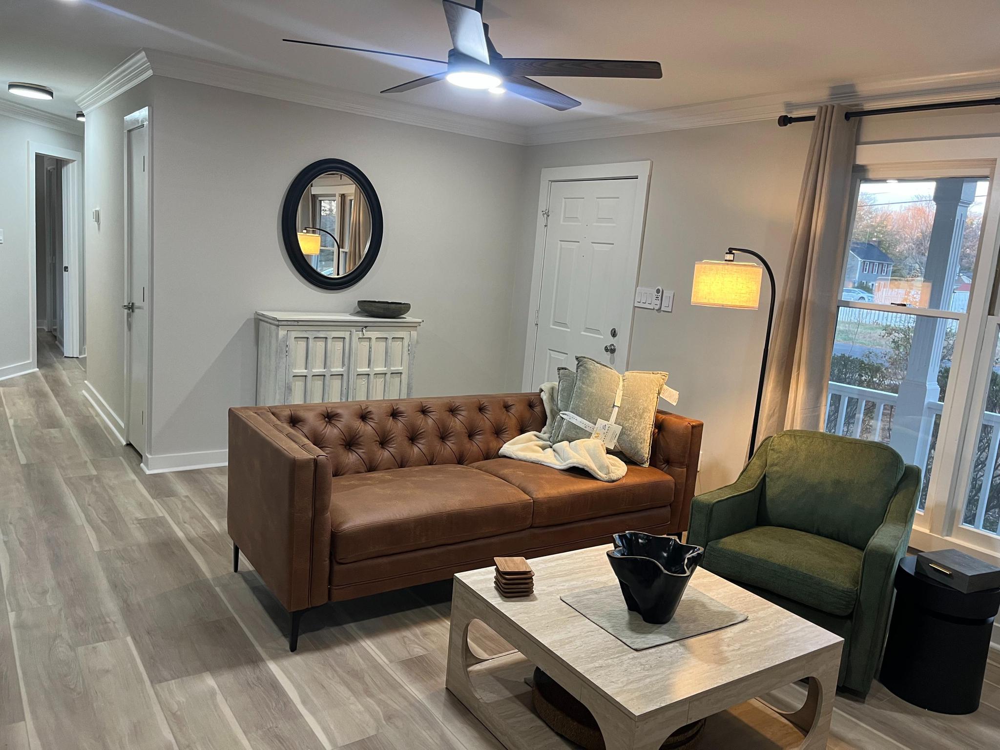 Welcome to "Abigail," a completely remodeled, single-level home located in the heart of charming downtown Apex. Whether you are visiting for a weekend getaway, relocating, or looking for the perfect work-from-home escape, this thoughtful property has everything you need to settle in comfortably from the moment you walk through the door. Enjoy ultimate privacy with no shared walls and the convenience of no stairs—the entire home is yours to enjoy!