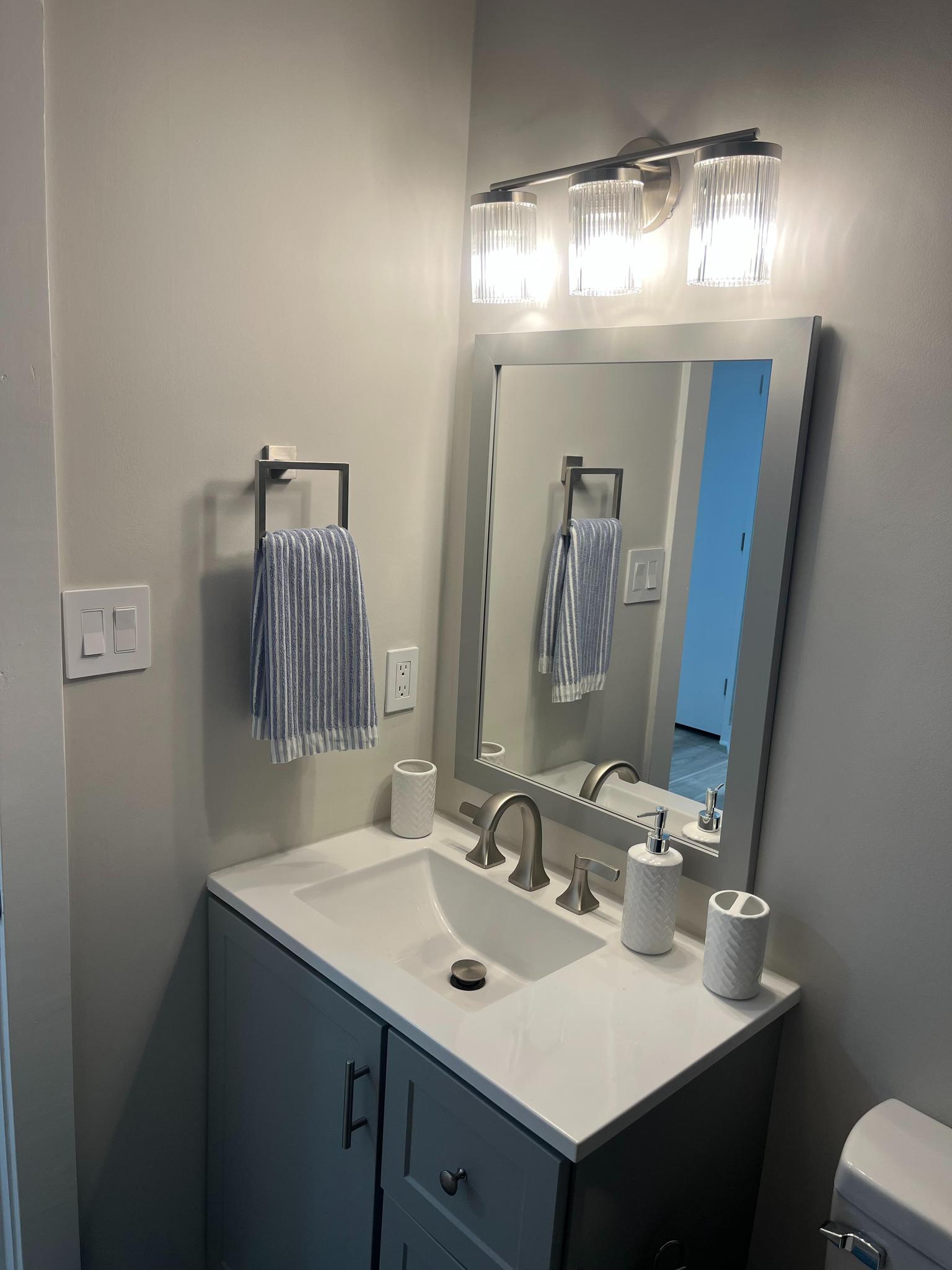 Guest Bathroom: A full hallway bathroom featuring a convenient tub/shower combo.