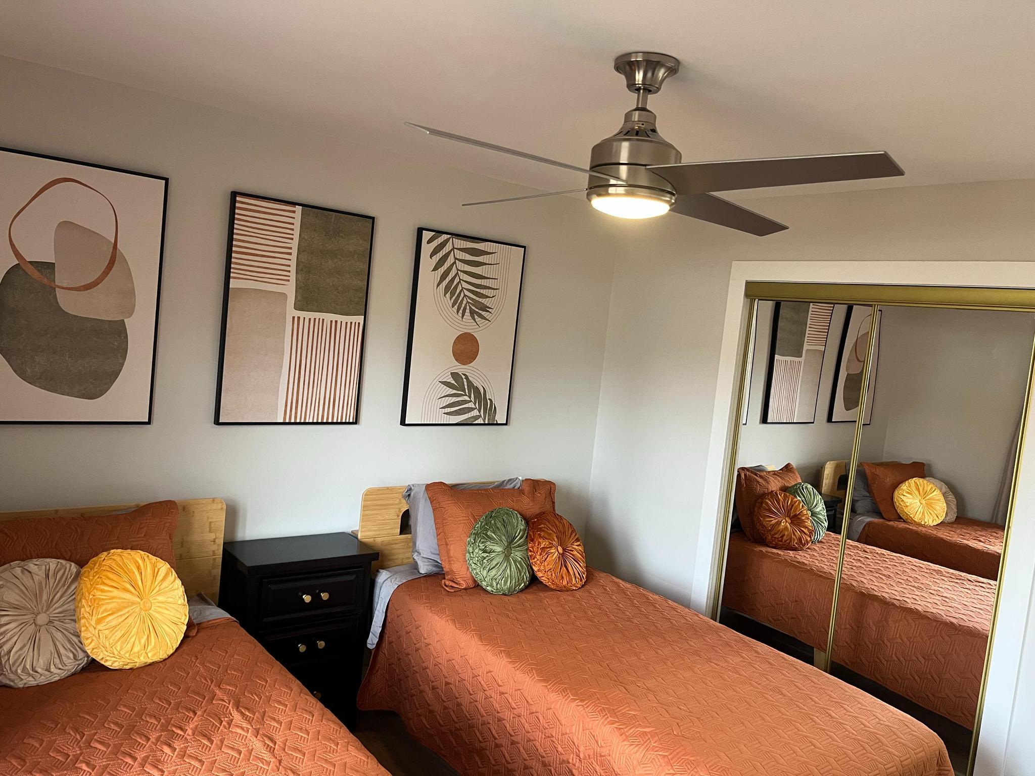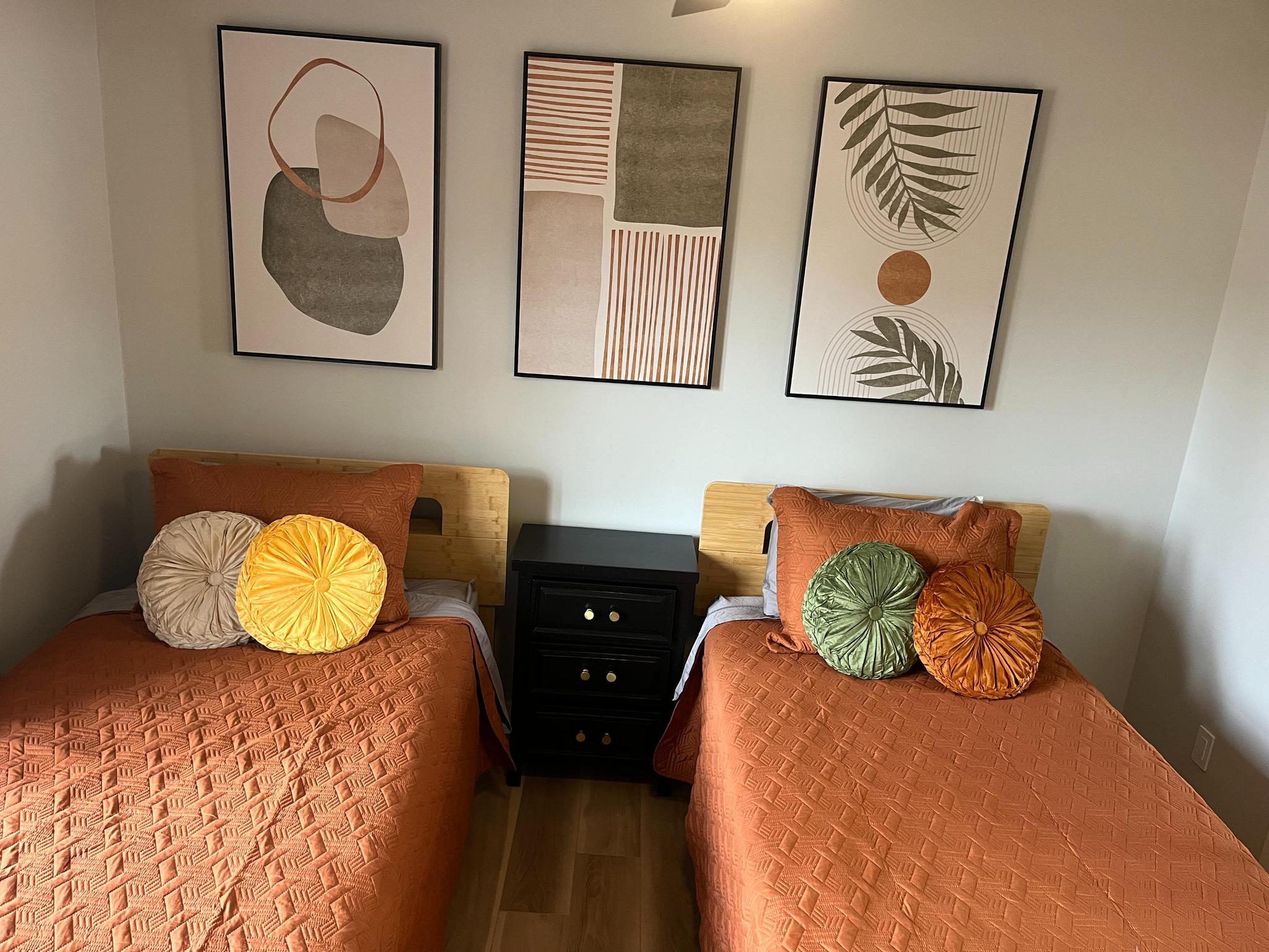 Bedroom 3: Furnished with two extra-long twin beds (great for taller guests) and a secondary work desk.
